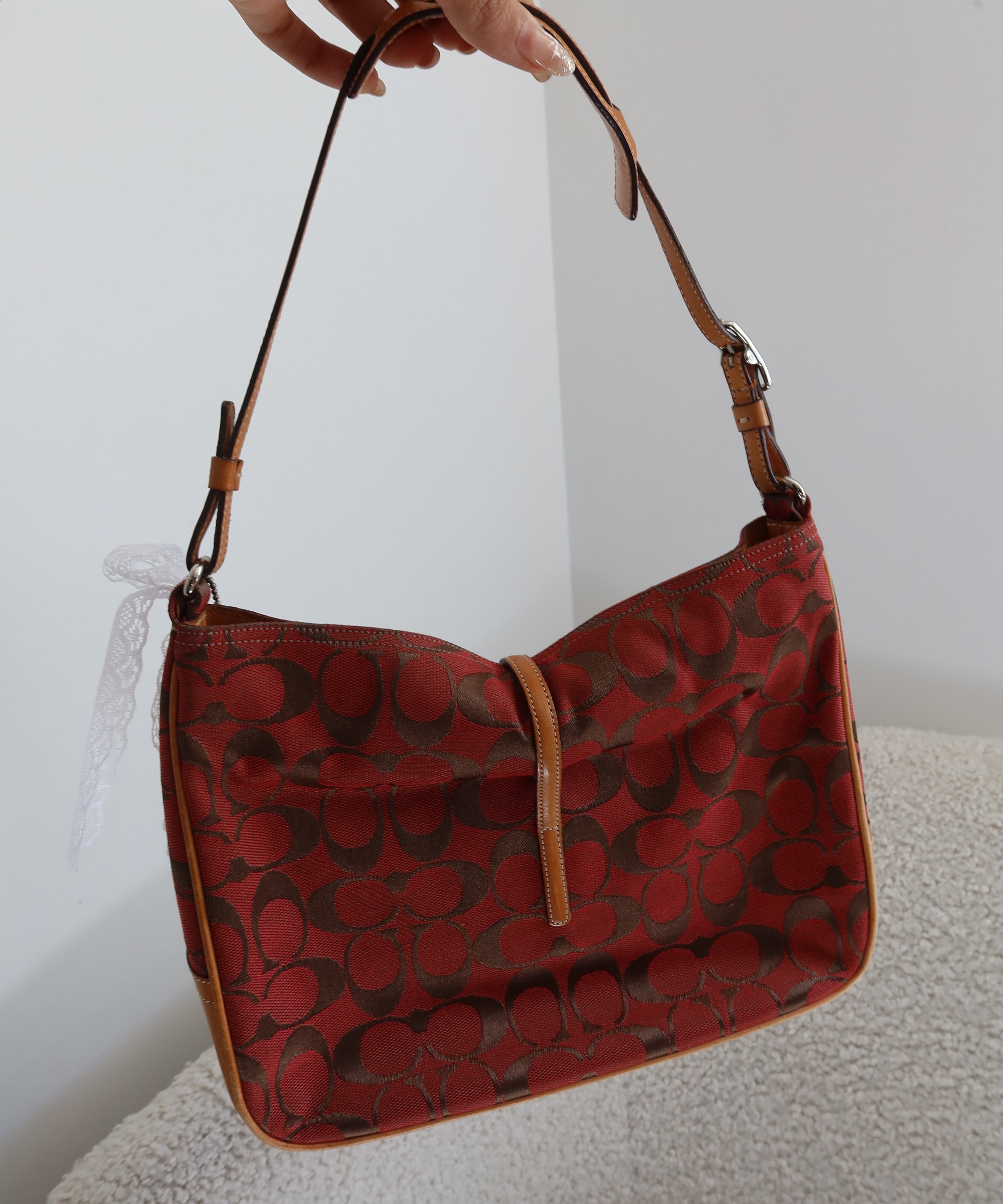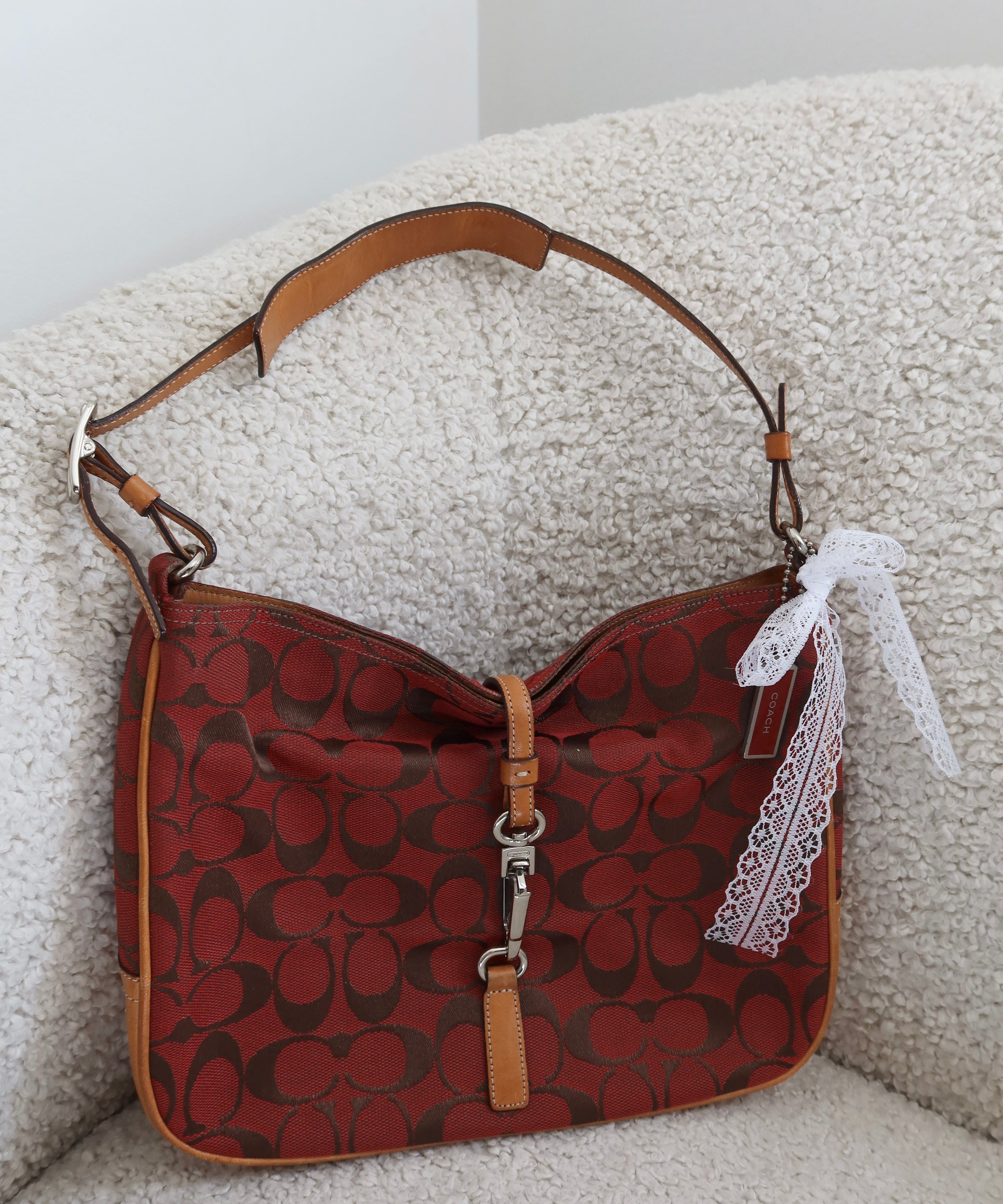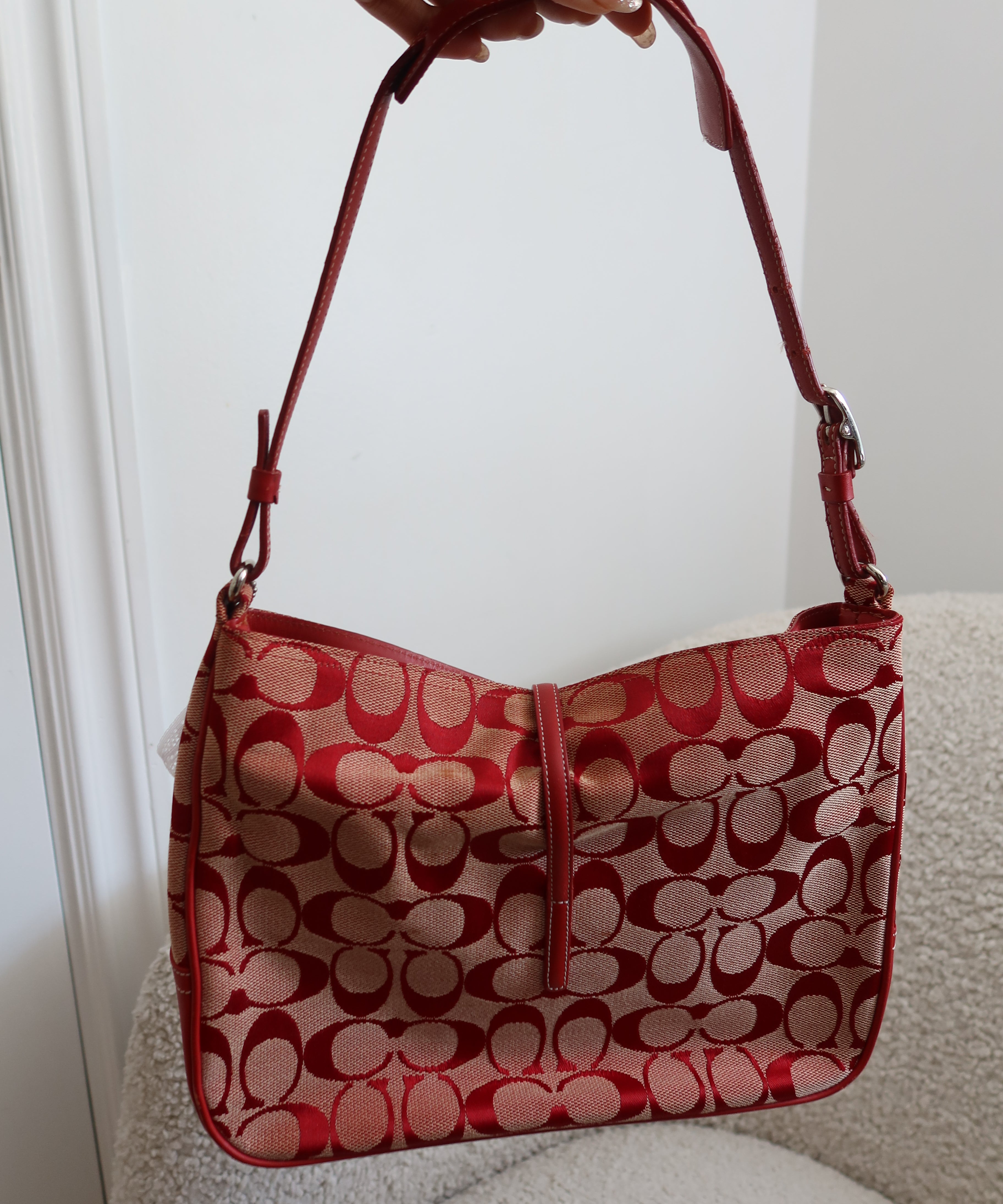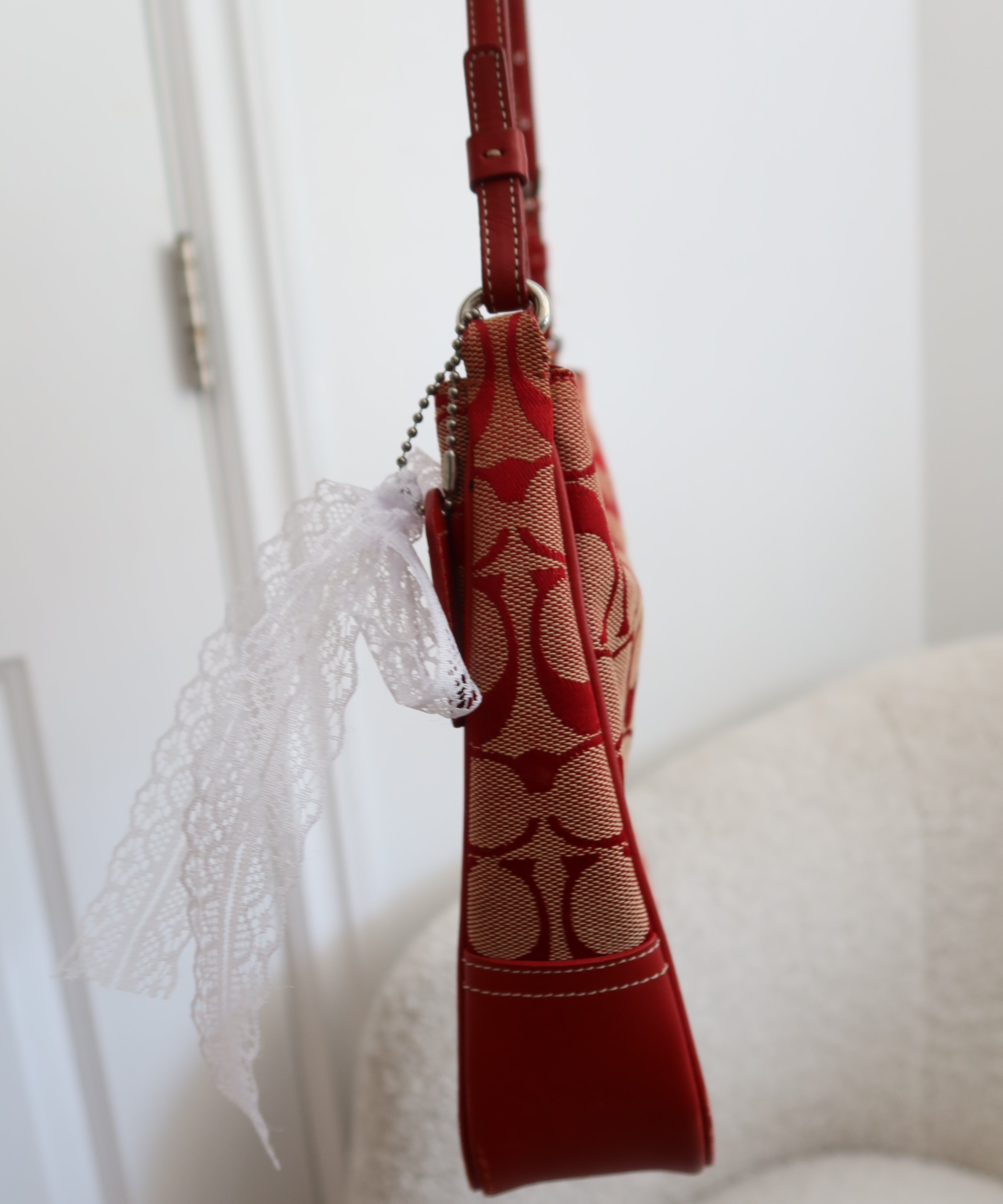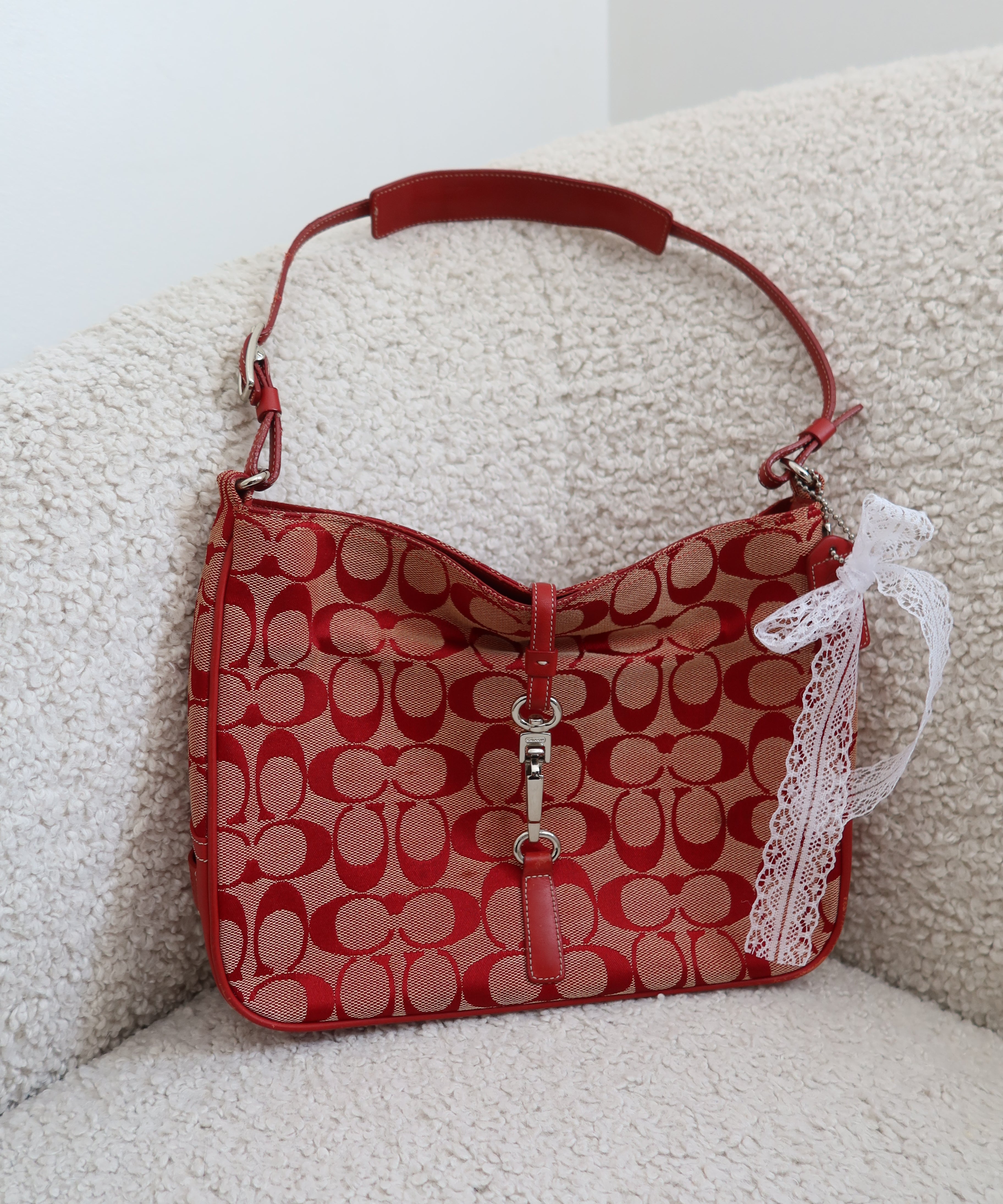 Coach Red Monogram Hamptons Clip Bag