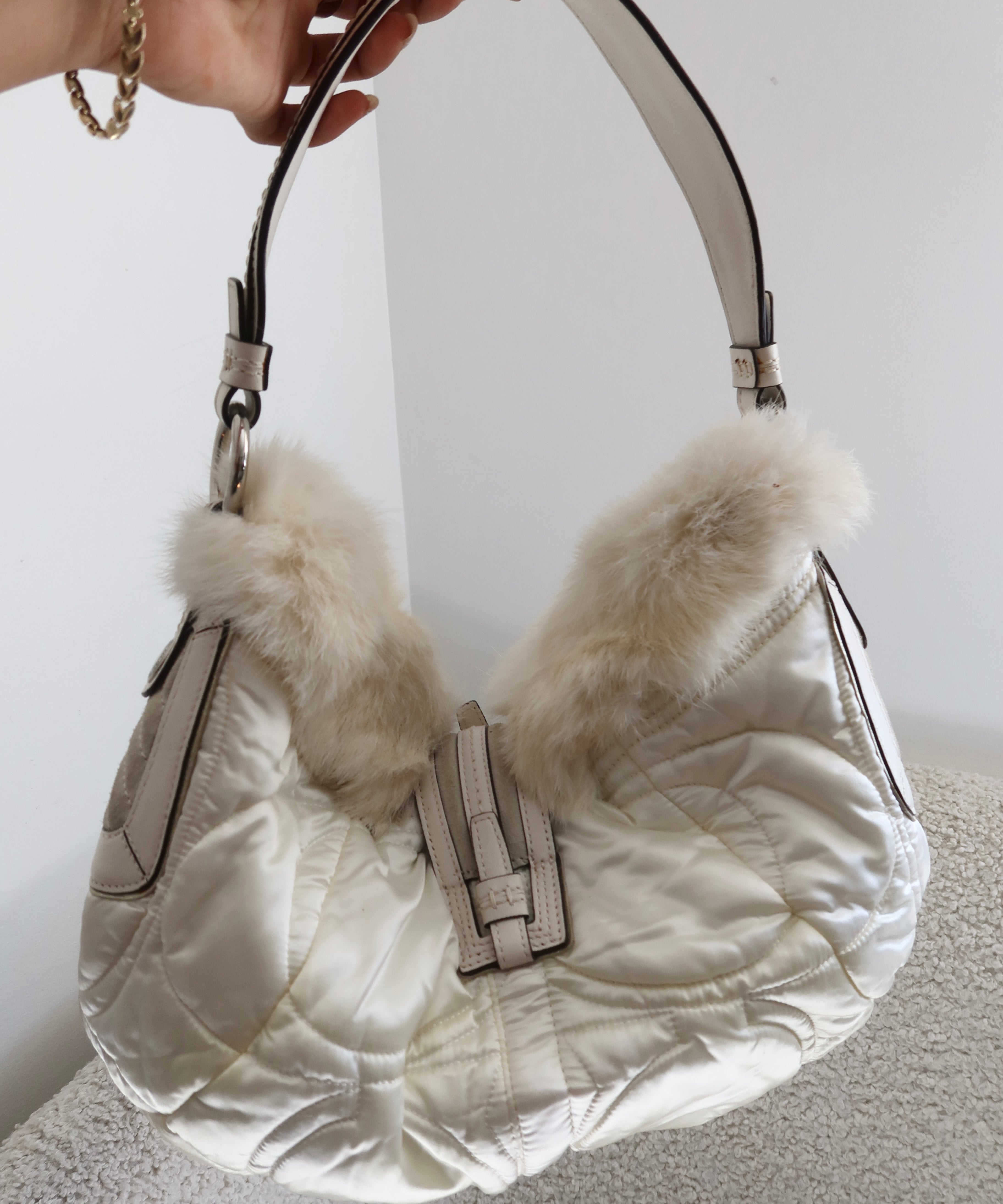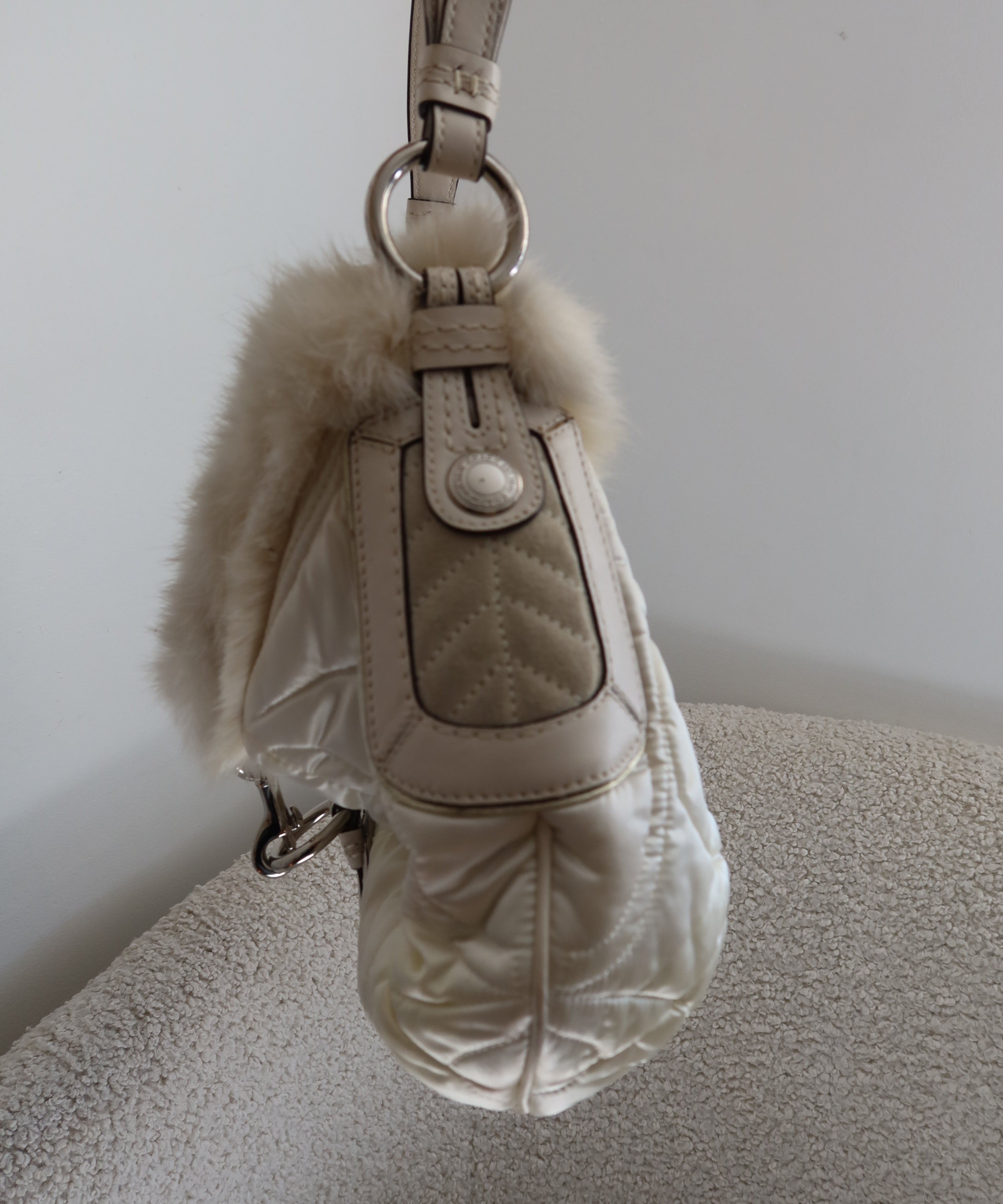 White Coach Rabbit Fur Hobo Bag