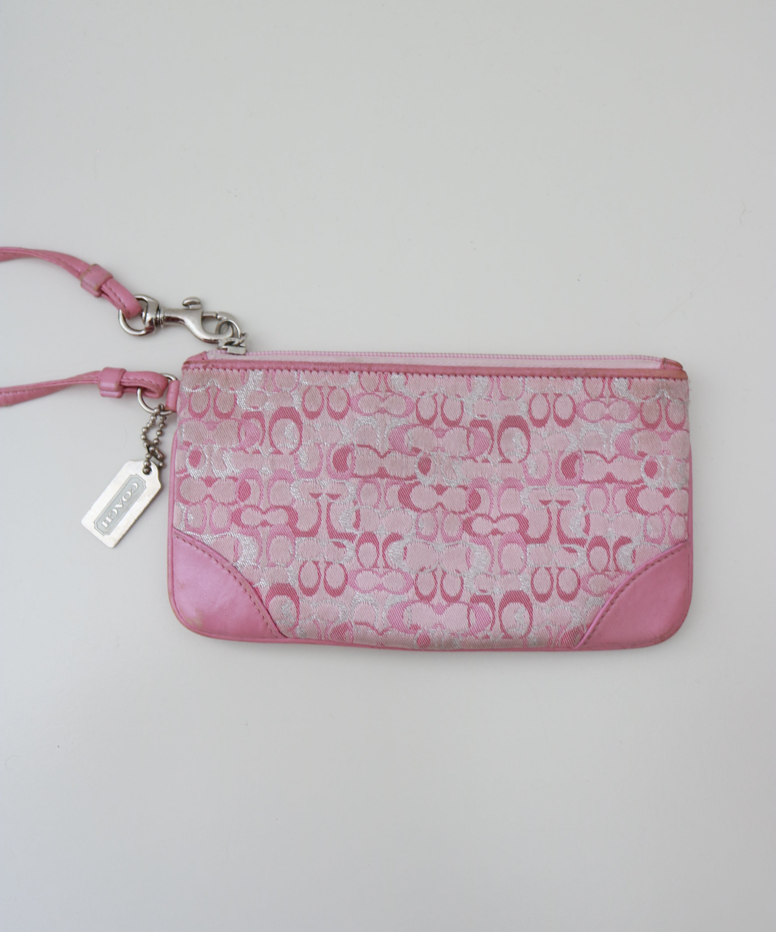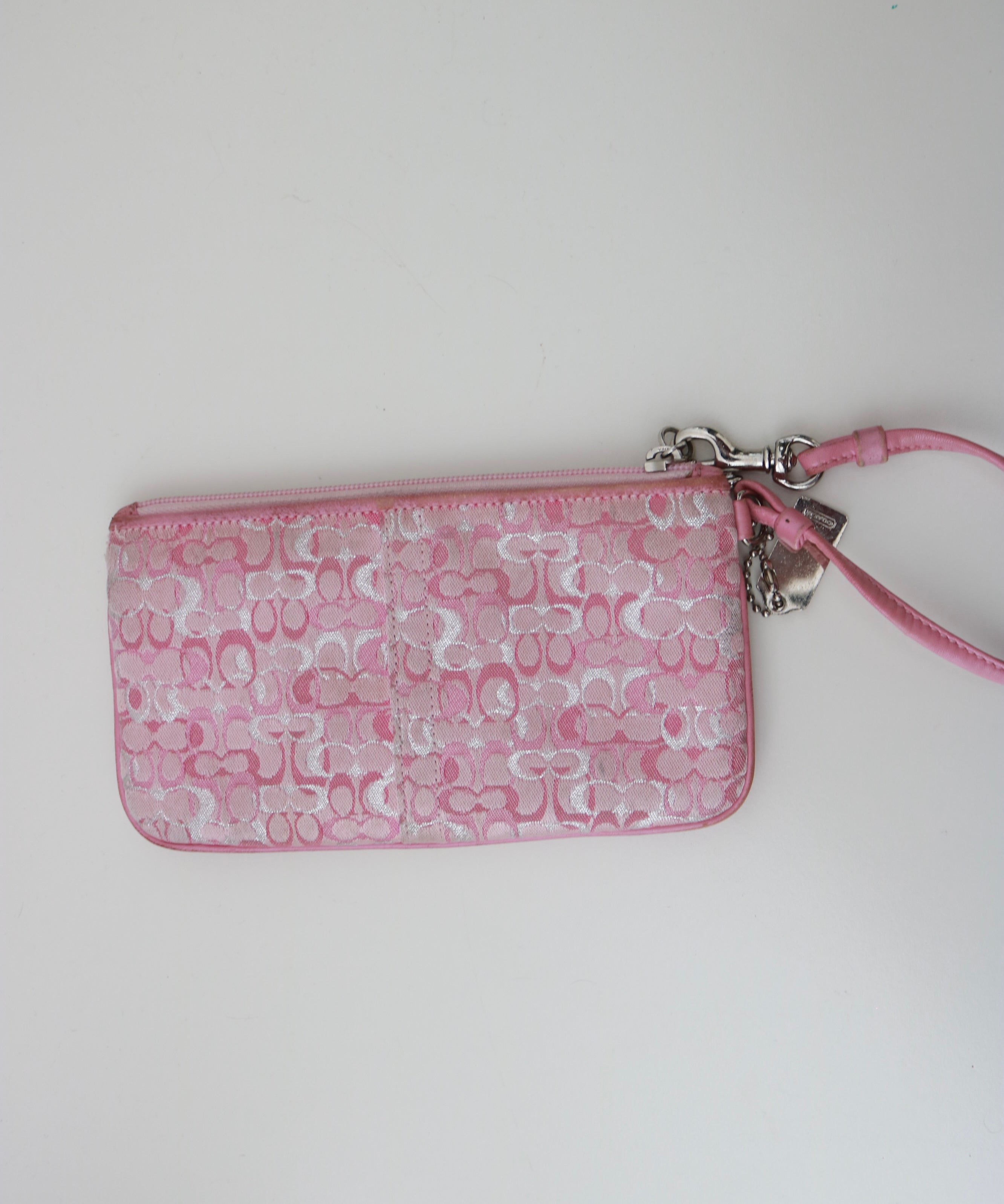 Rare Coach Pink Optic Shimmer Signature Wristlet