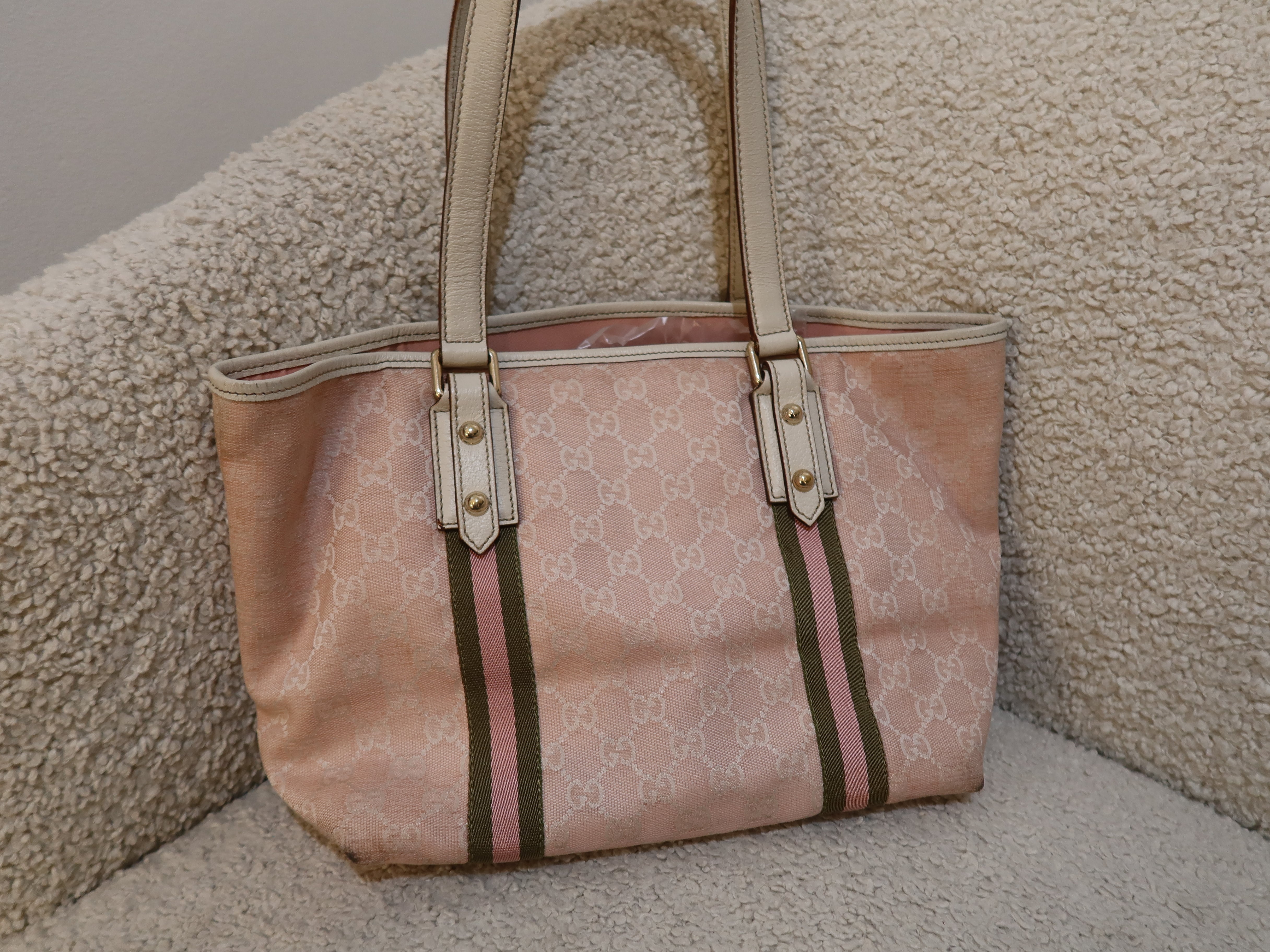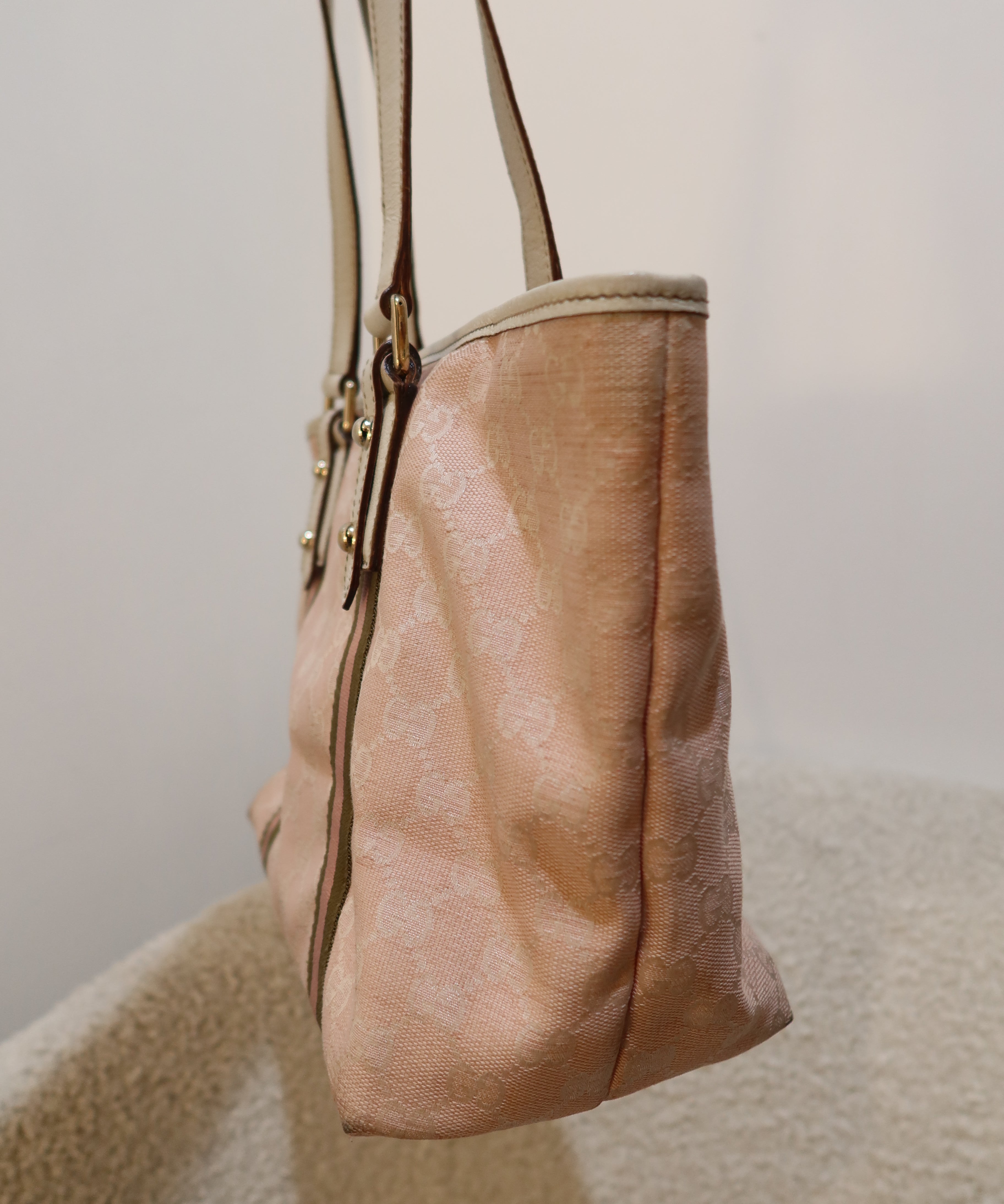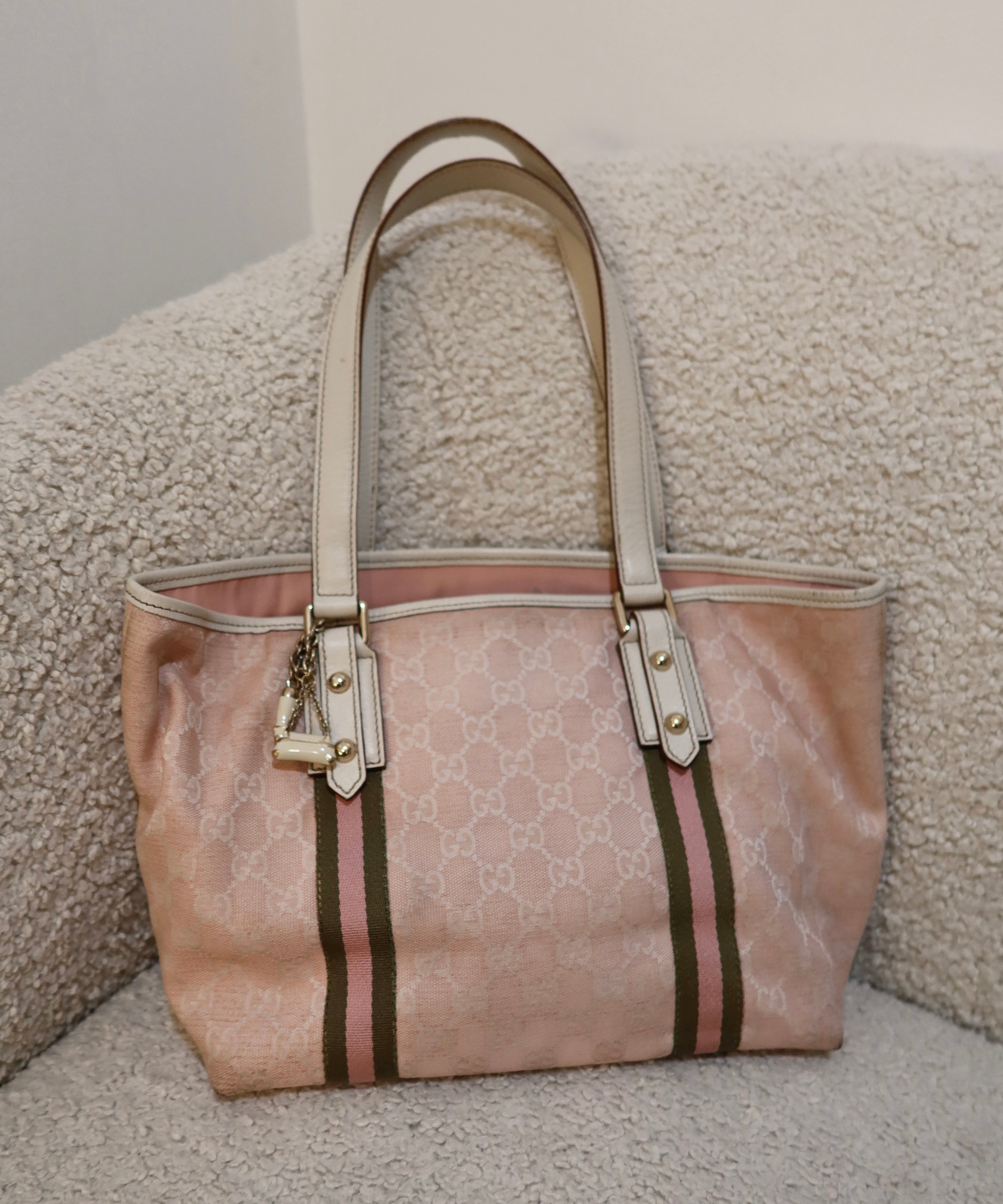 Baby Pink Gucci Abbey Tote Bag with Gucci Charm