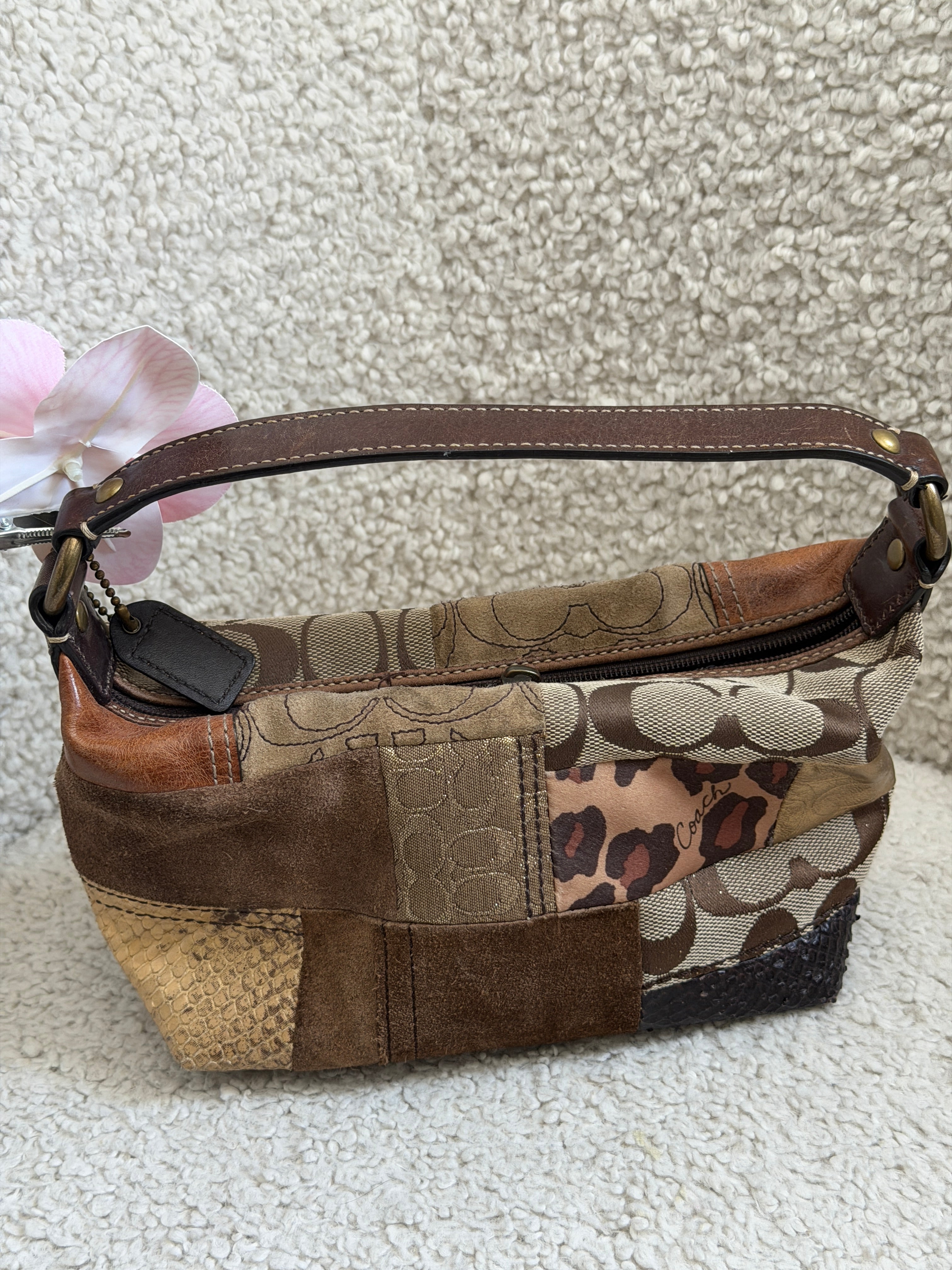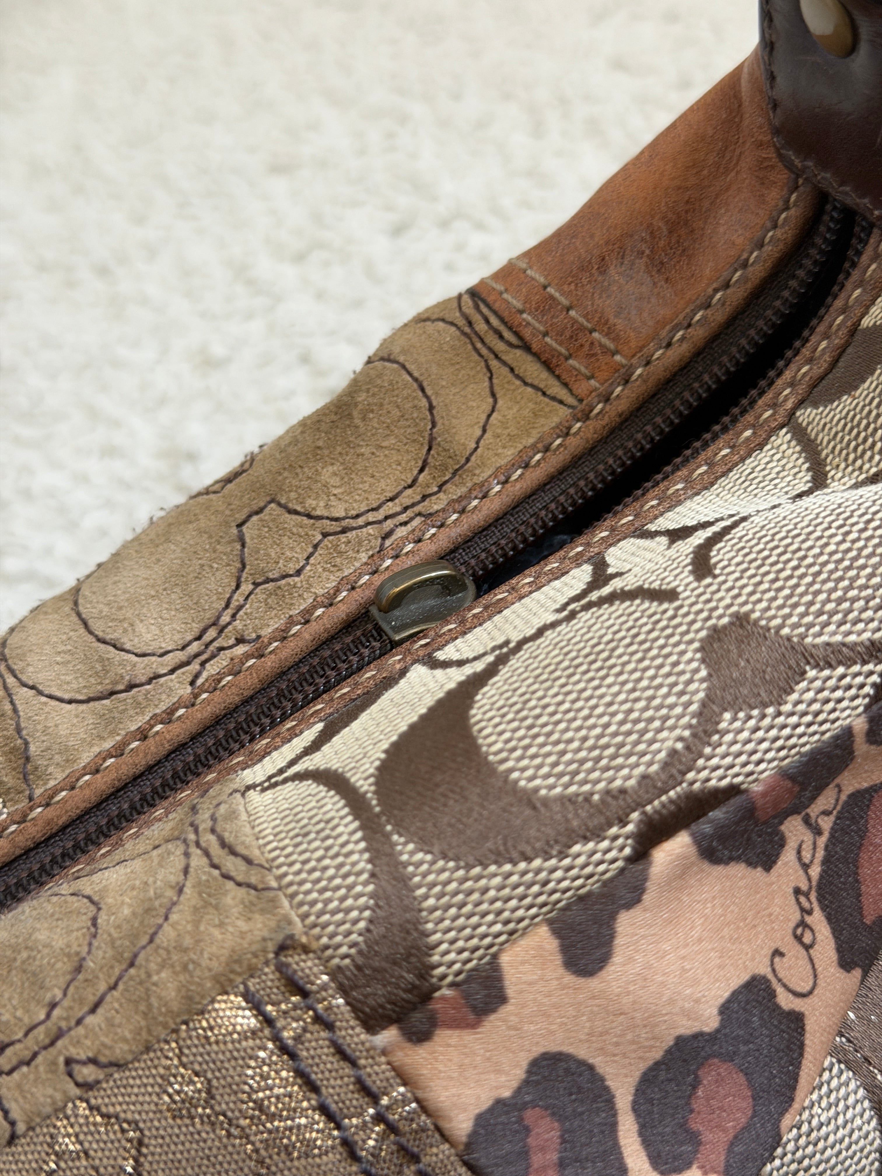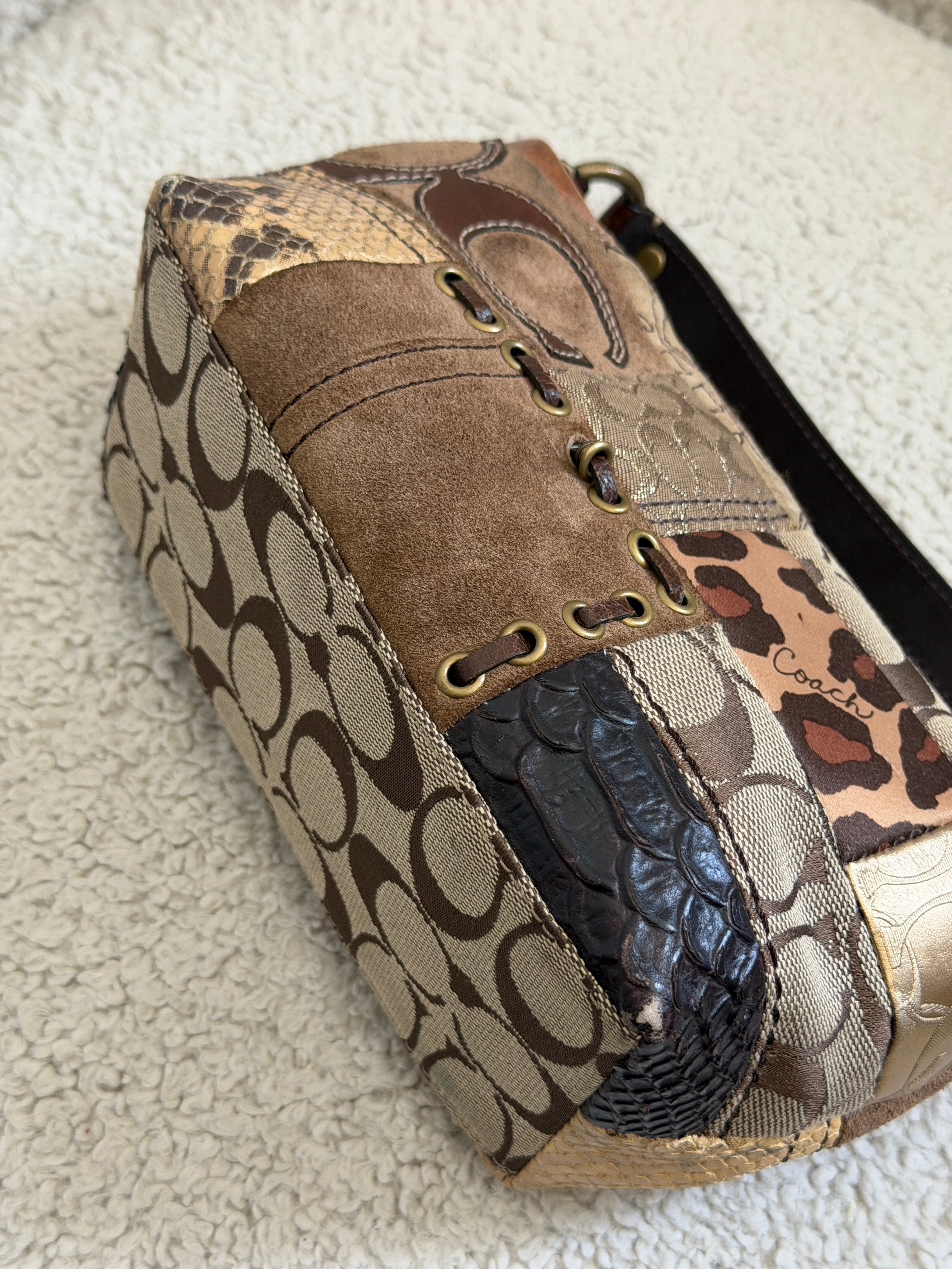 Coach Leopard Patchwork Top Handle Pochette