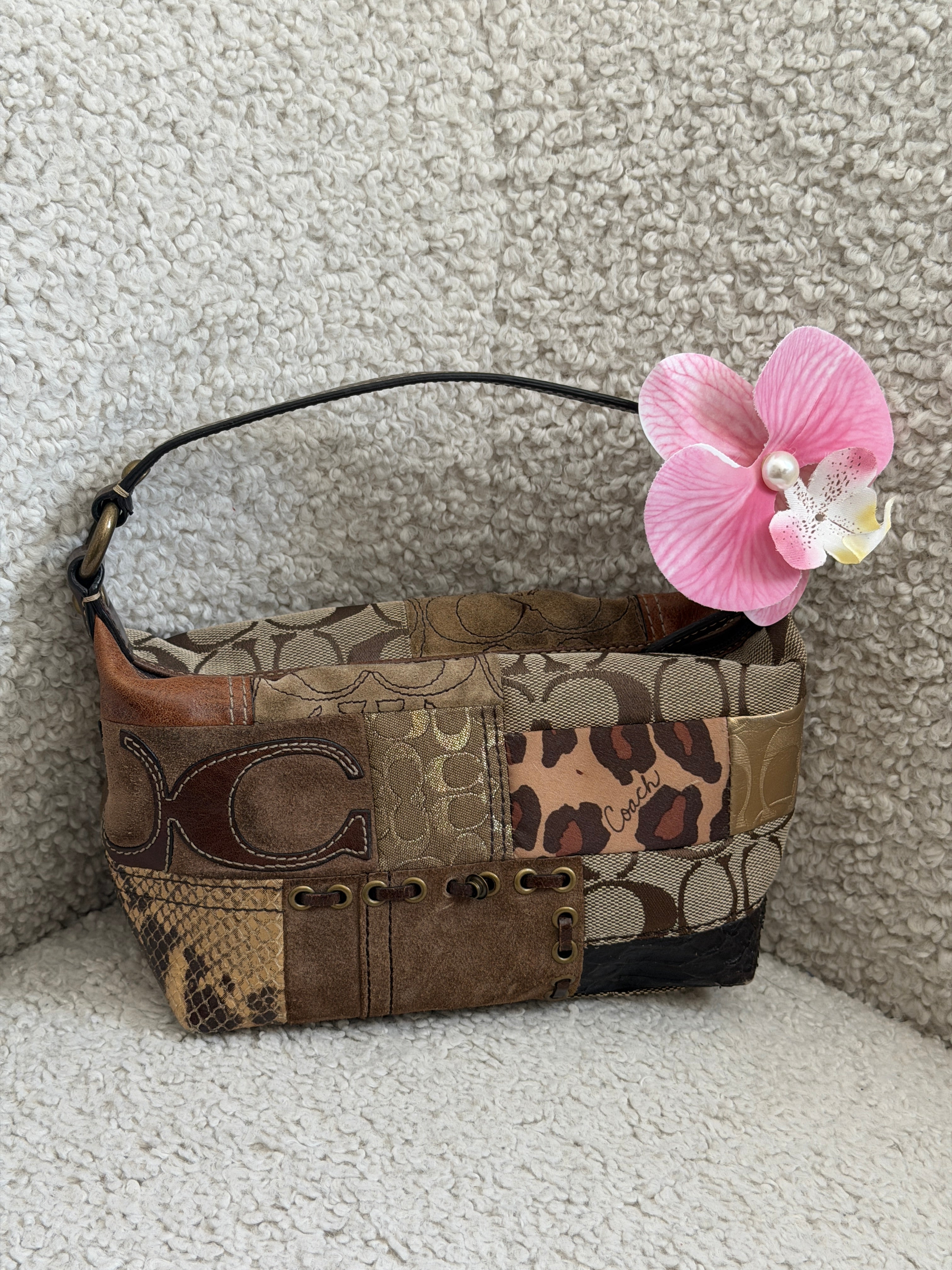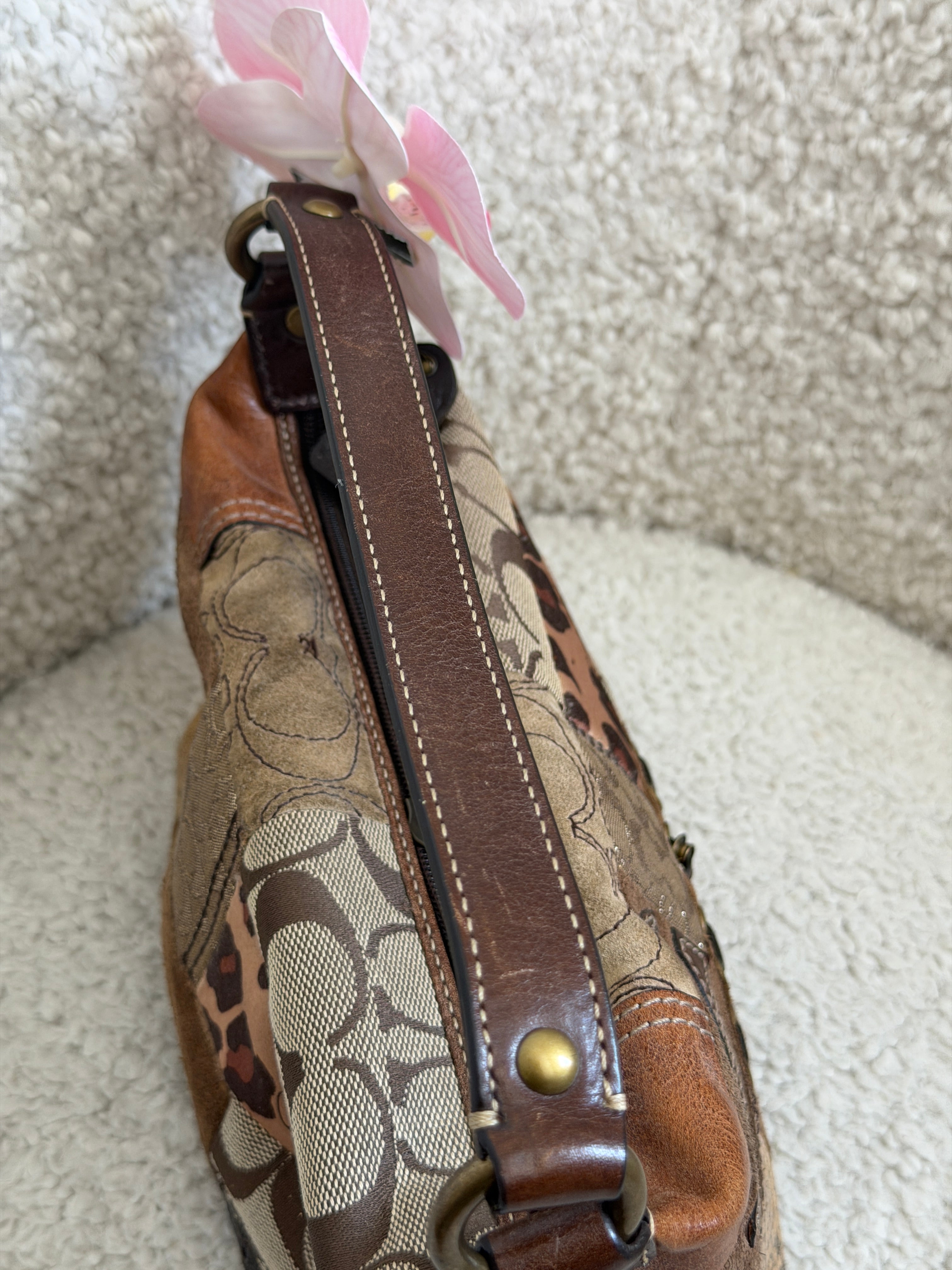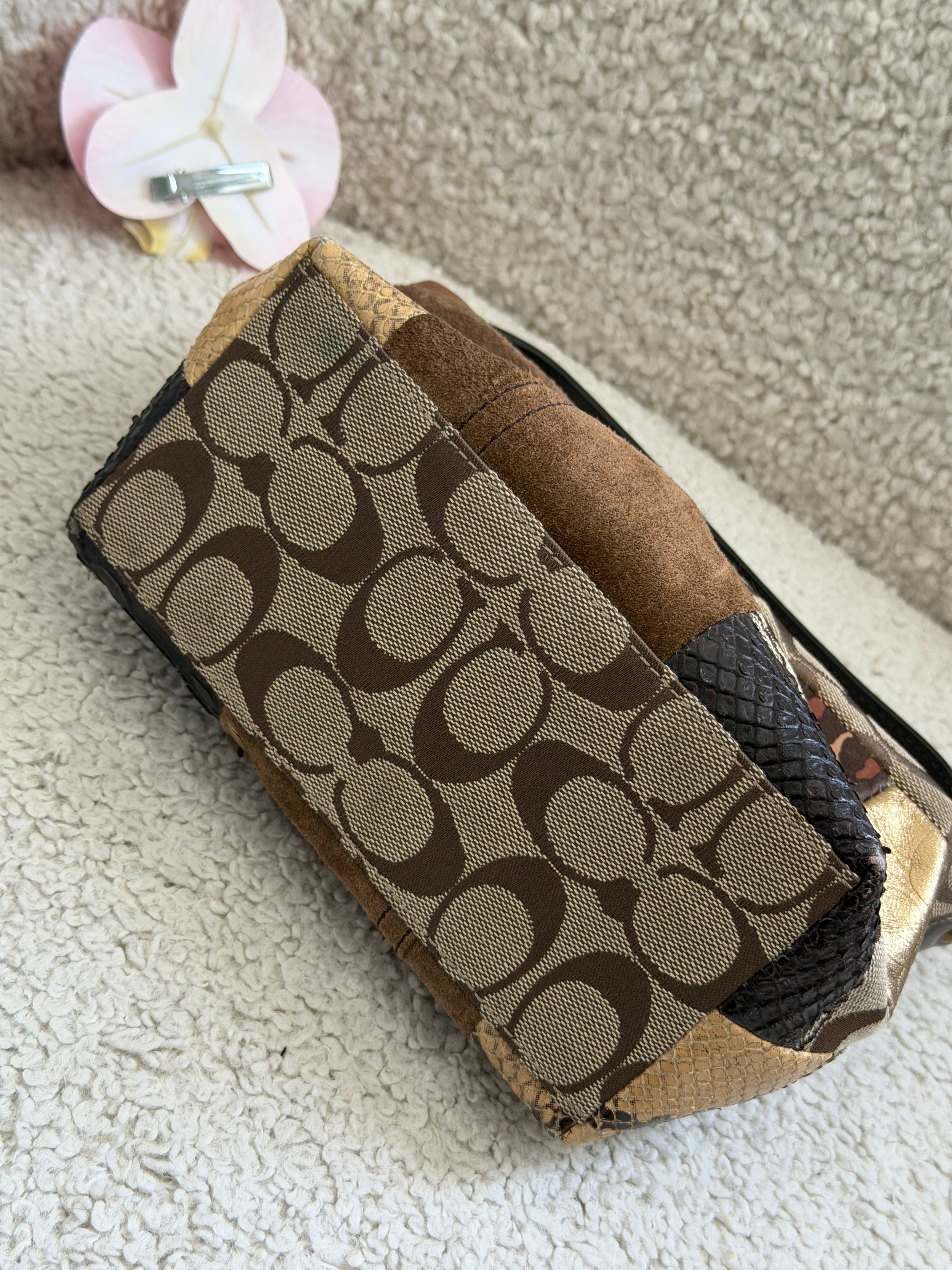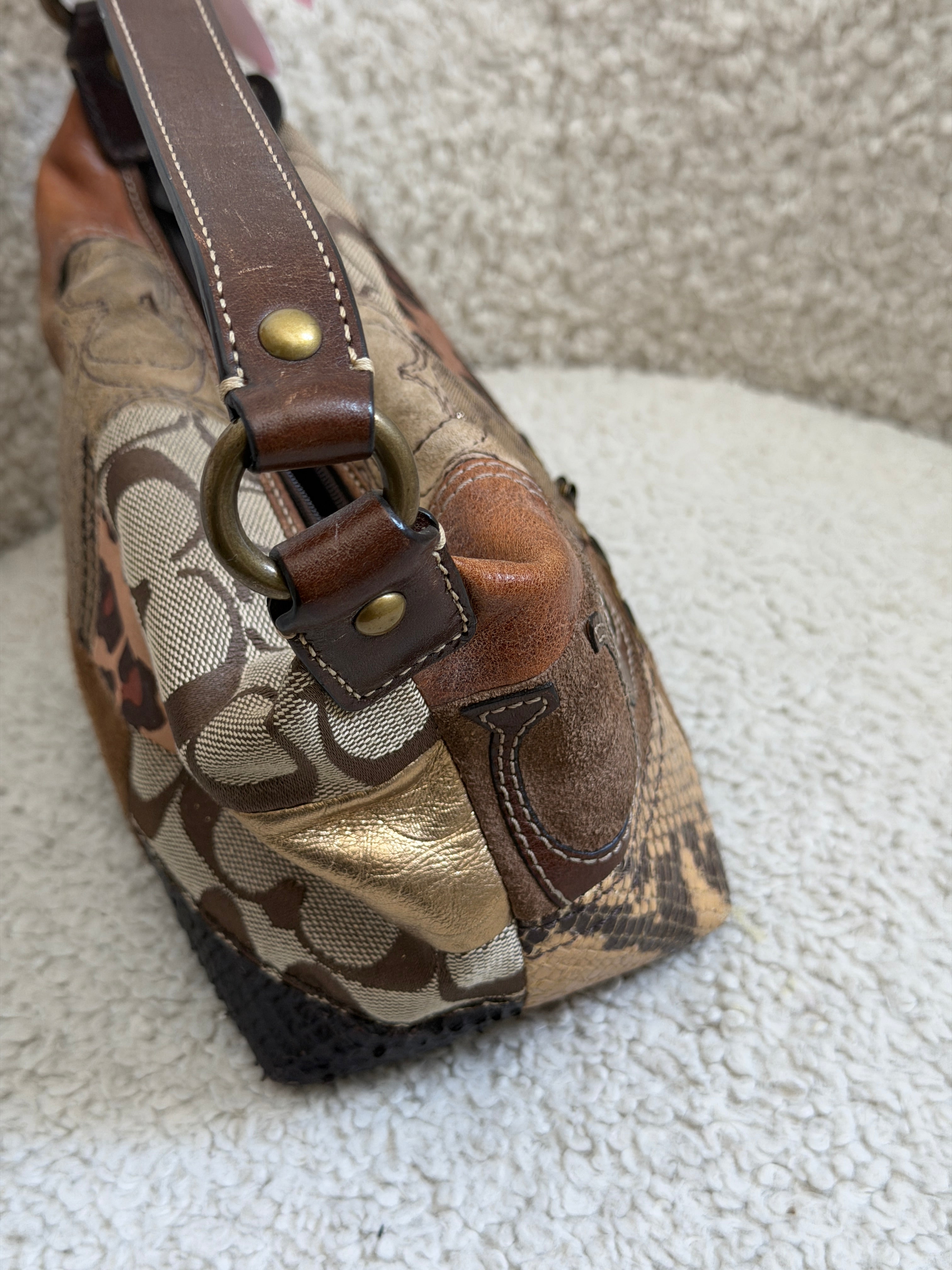 Coach Leopard Patchwork Top Handle Pochette