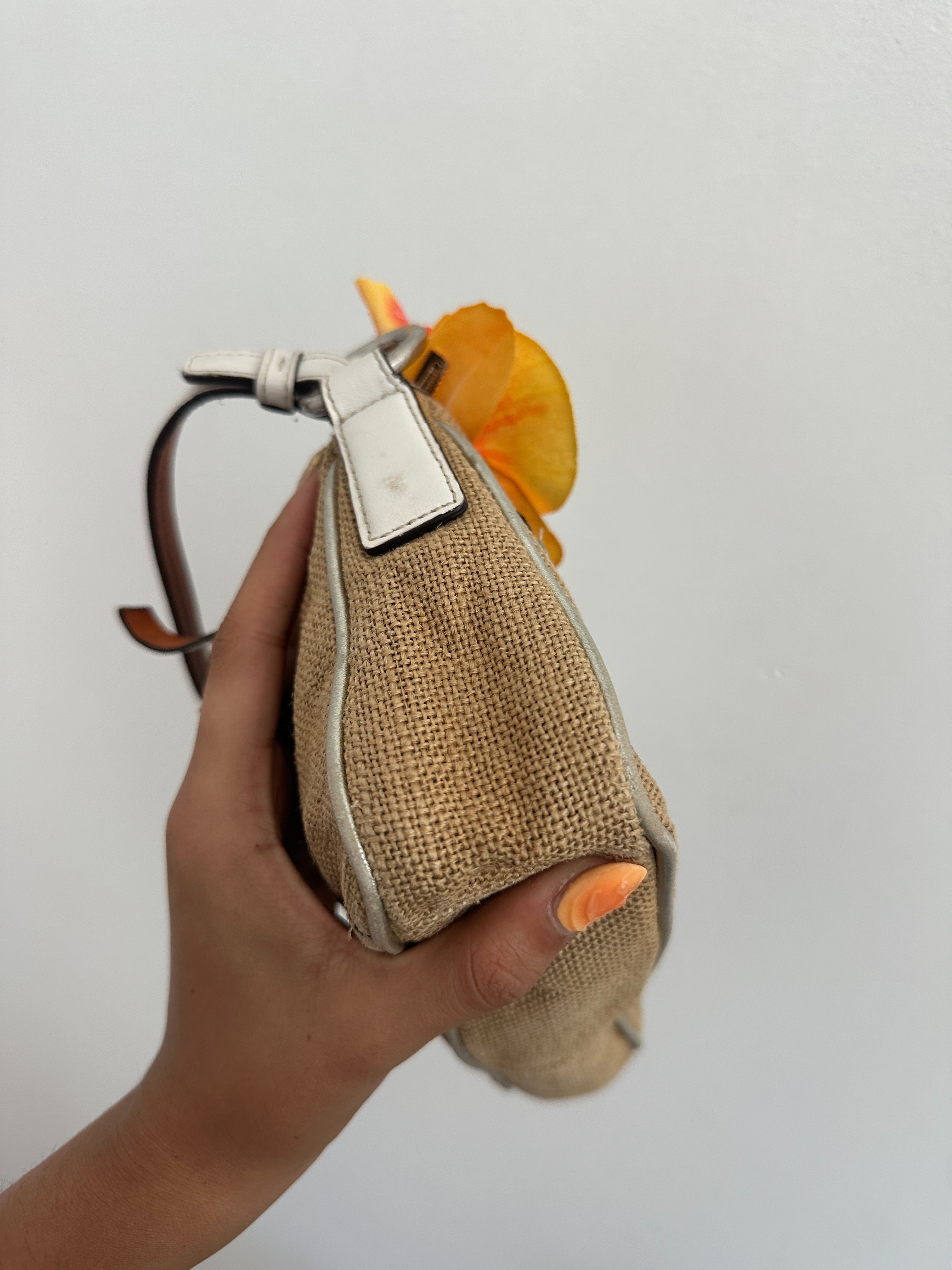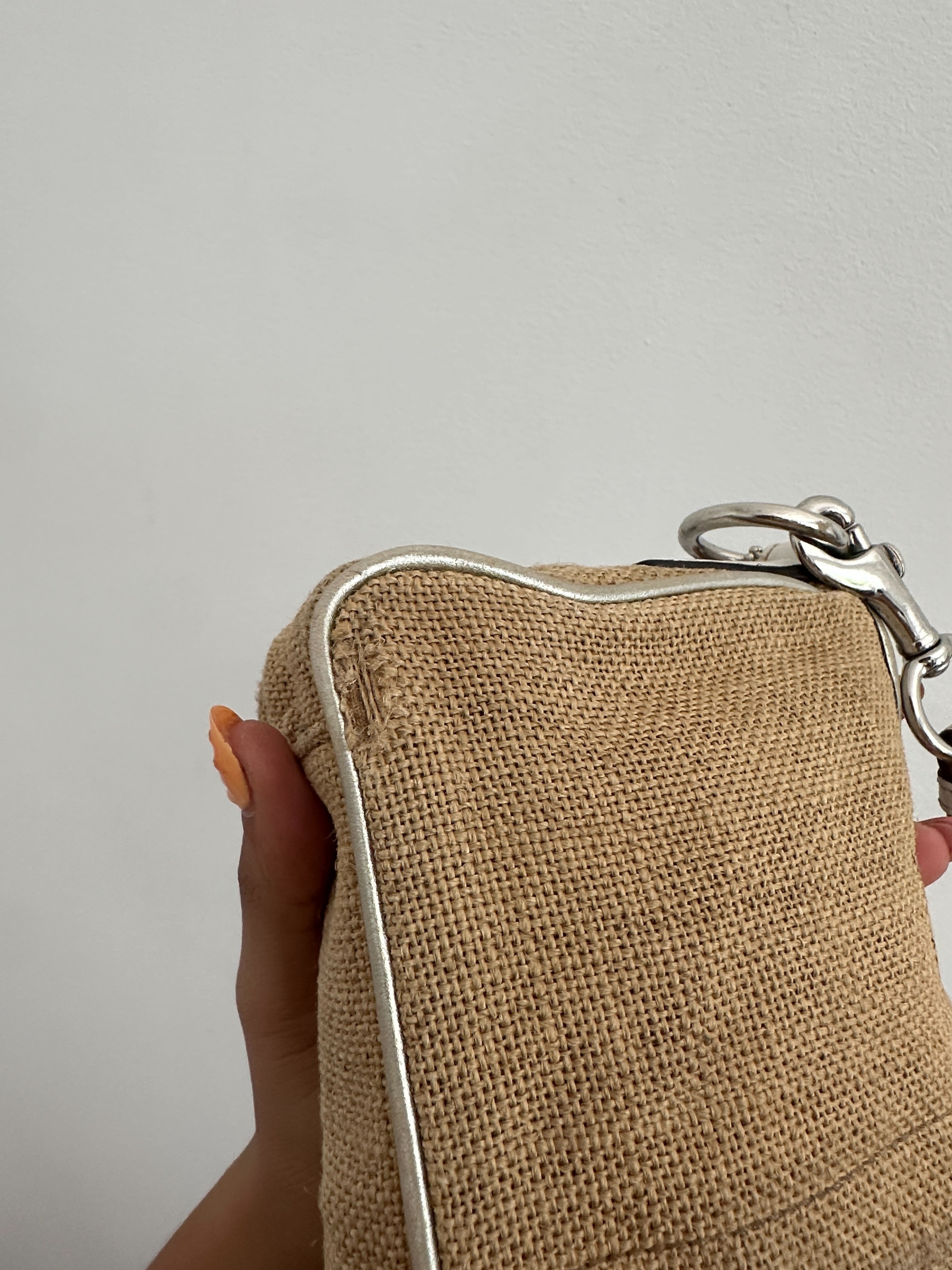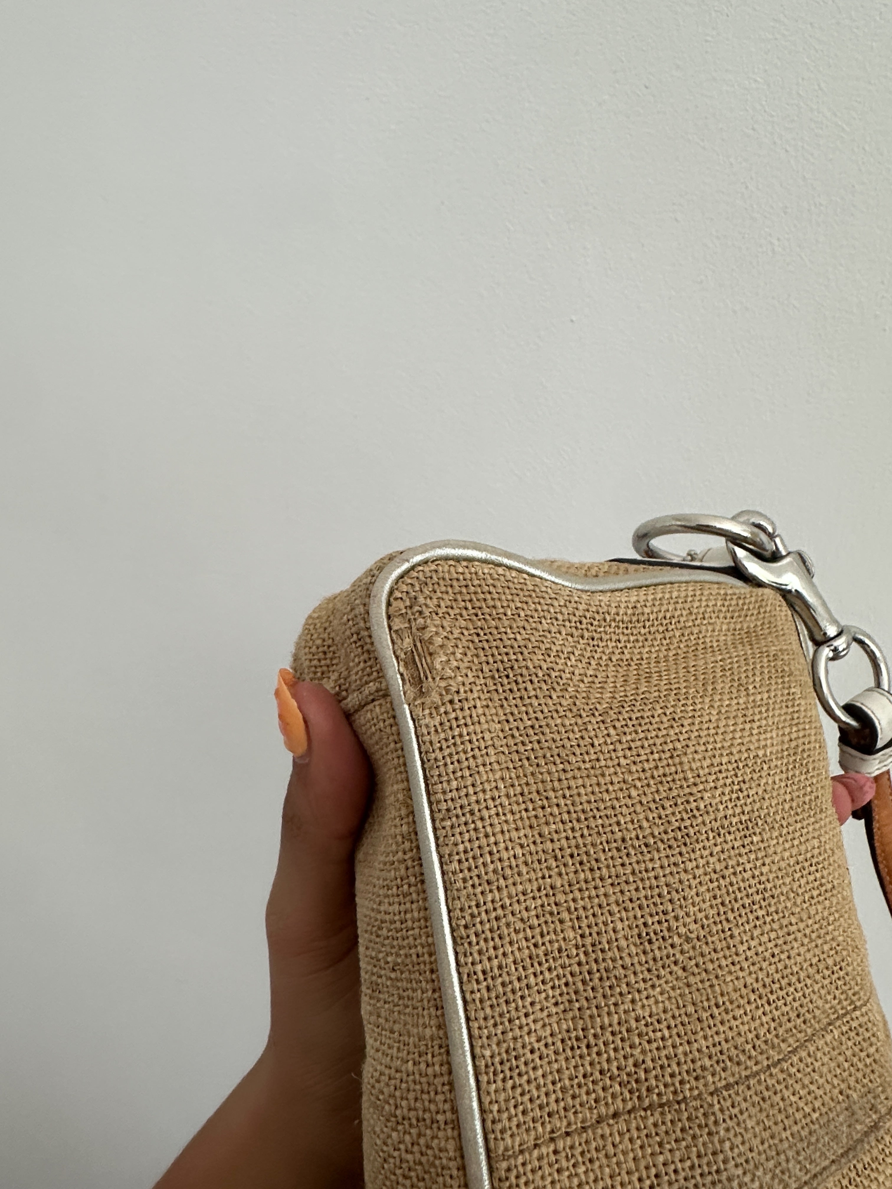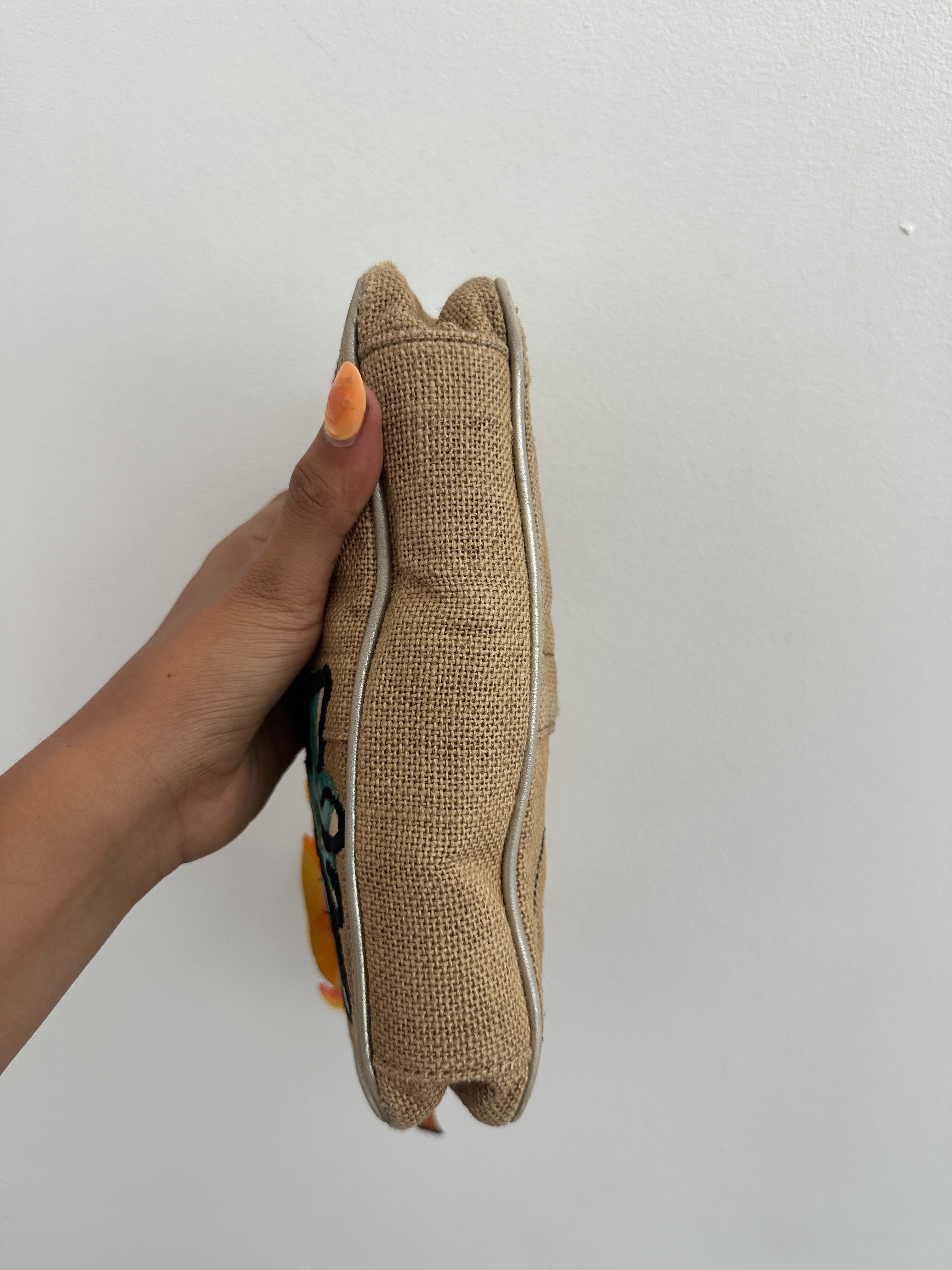 • fair condition, has lost some of its shape due to the sttaw wear over time, one tear on the bottom corner